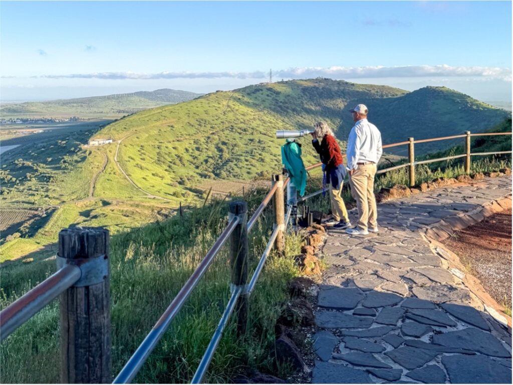 Congresswoman Kiggans looks at Syria through a telescope at Mount Bental, a dormant volcano in the Golan Heights that overlooks Israel’s borders with Syria and Lebanon.