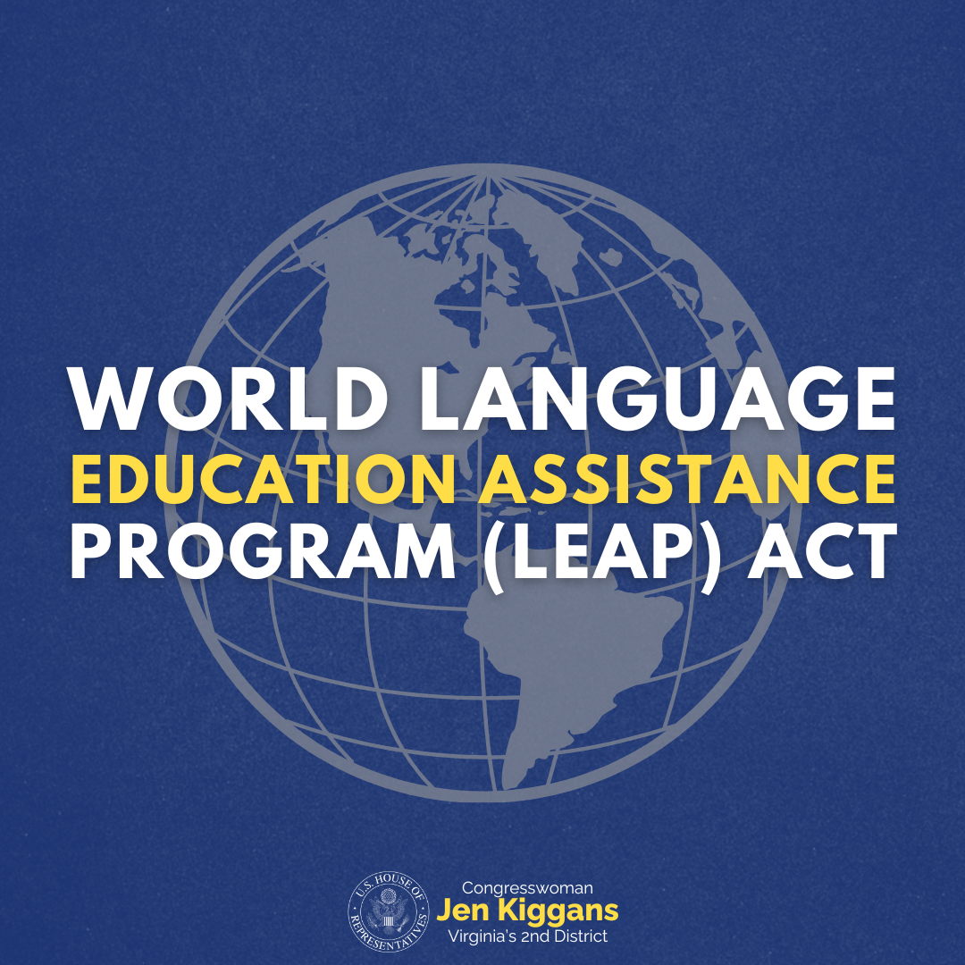 WASHINGTON, DC – This week, Congresswoman Jen Kiggans (VA-02) introduced the World Language Education Assistance Program (LEAP) Act, a bill to ensure…