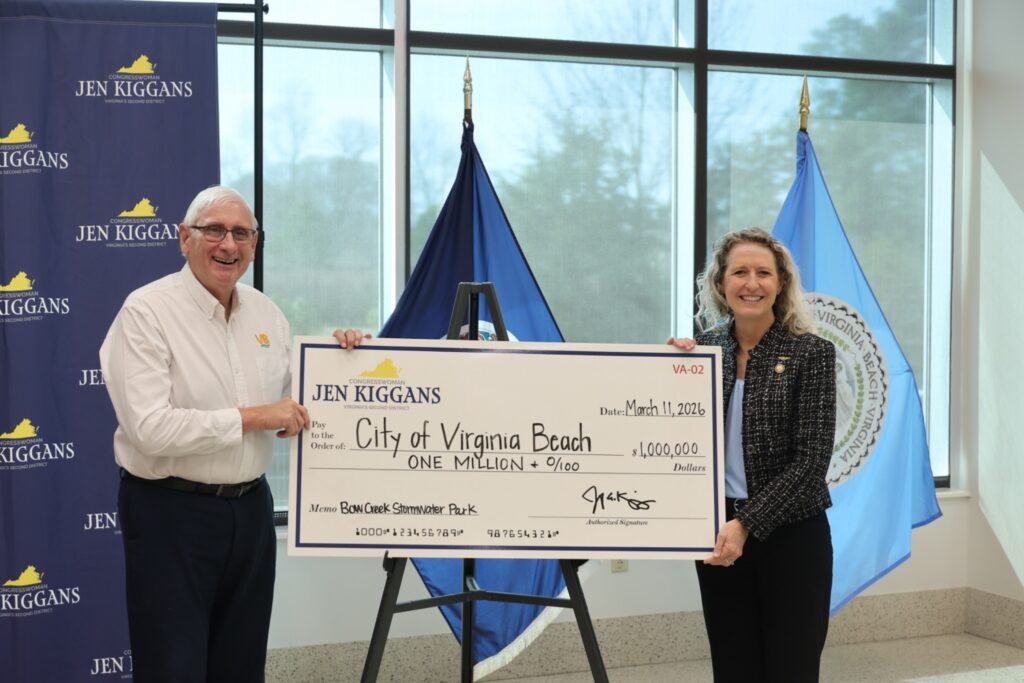 As the representative for Virginia’s Second District, Rep. Kiggans continues to champion investments that strengthen infrastructure, support local communities, and improve long-term resilience across Hampton Roads.