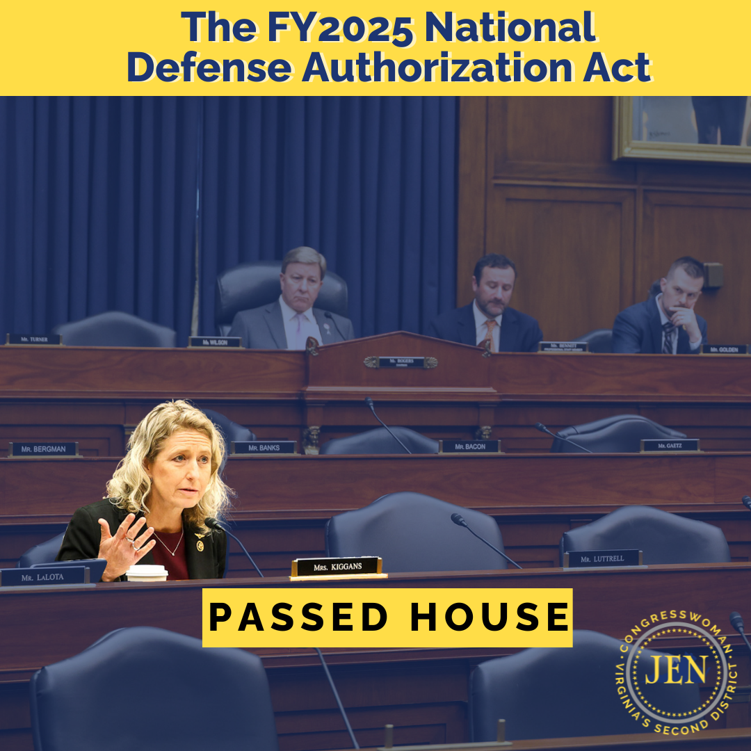 WASHINGTON, DC: Yesterday, Congresswoman Jen Kiggans (VA-02) secured critical provisions directly benefiting Hampton Roads in the fiscal year 2025 (FY25)…