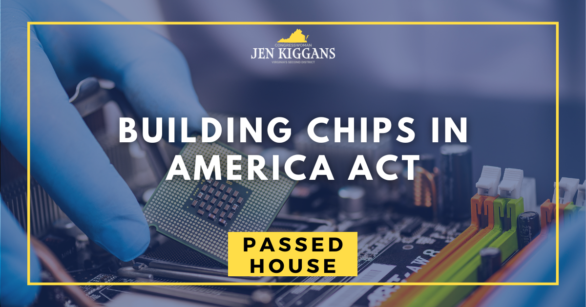 WASHINGTON, DC: Today, the House passed S. 2228, the Senate version of Congresswoman Jen Kiggans’ (VA-02) Building Chips in America Act (H.R. 4549)….