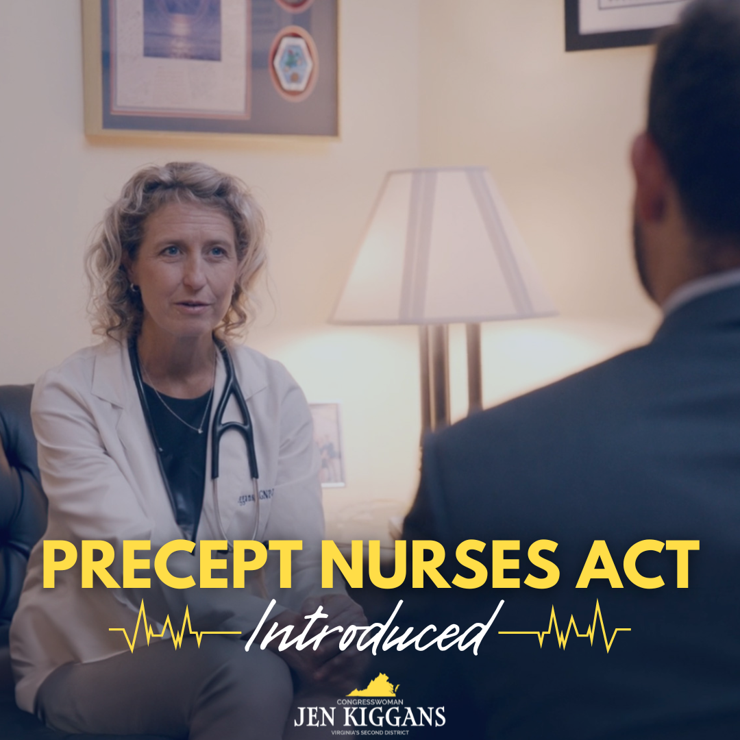 WASHINGTON, DC — Today, Congresswoman Jen Kiggans (VA-02) introduced the PRECEPT Nurses Act, a bipartisan bill that would address our country’s nursing…