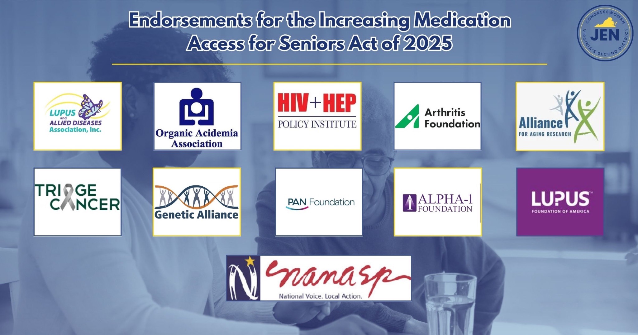 Washington, D.C. —Rep. Jen Kiggans (R-VA) and Congressman Raja Krishnamoorthi (D-IL) introduced the bipartisan Increasing Medication Access for Seniors Act…